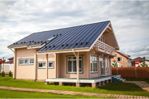 Главная особенность этого материала – легкость монтажа. Листы крепятся к обрешетке саморезами через отверстия вдоль замочной части кровли без использования специального оборудования.