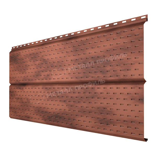 Софит – это панели сайдинга Lбрус, на поверхности которых нанесена перфорация. Применяется для оформления карнизных свесов. Софит подчёркивает законченный и аккуратный вид здания. Отверстия в планках обеспечивают свободную циркуляцию воздуха под кровлей и предохраняют от появления плесени, грибка, конденсата.Покрытие CLOUDY® матовый: